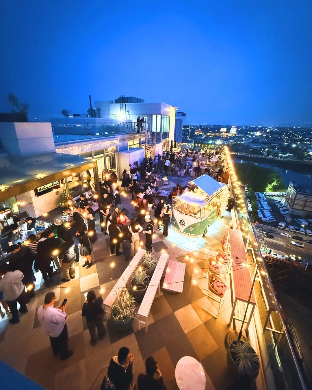 Perched high above the neighborhood, our seasonal rooftop invites you to enjoy genuine hospitality alongside the allure of an exclusive urban escape. From late-night DJs spinning tunes out of a Volkswagen bus to vibrant energy and unparalleled views, every moment here is designed to awaken your senses.
